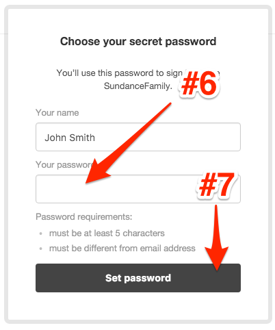 #6. You will then be taken to a screen where you can create a new password. Enter your password in the "Your password" form field. Please make sure the password is a minimum of 5 characters and is different to your email address.